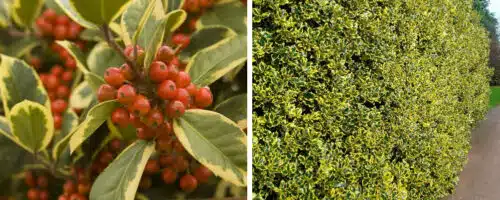 Tapestry hedges may be created using more colouful hedging plants, arranged in blocks of colour interspersed with plainer green species for contrast. The limit of colour combinations possible is limited only by the imagination and the need to (at least approximately) choose all species with a similar growth rate. Popular combinations include Green and Purple Beech, Golden Privet, Pyracantha and Photinia Red Robin.