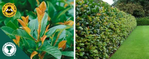 To diversify from the mid green of most hedging to more colourful hedging plants the beautiful apple green of Griselinia hedging would provide more subtle interest within the same pallette of colour, and of course the Photinia Red Robin hedge with its brilliant red new growth fading slowly to green is equally as attractive. For a low hedge or edge the silvery foliage of Cotton Lavender hedging topped by the button shaped bright yellow flowers is a sight to behold.