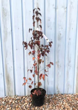 A very ornamental birch both with striking features have been combined to produce a relatively new hybrid the Birch Royal Frost or Betula pendula Royal Frost to add to the Betulaceae family. Developed in the United States of America in the late 20th century the Betula populifolia Whitespire has given its stunning white bark to the new variety whilst the Betula Crimson Frost has given its superb purple / burgundy foliage as a contrast.