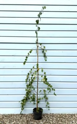 When planting Young’s Weeping Birch, ensure it is in a full-sun position and well drained soil. If you need to improve the structure of the soil, add lots of well rotted organic matter. The tree can grow in partial shade, but full sun is preferable. Water well after planting and during dry spells (but overwatering can lead to root rot so be careful of this). Mulch around the base to suppress weeds. The same advice applies to other birch species, including Betula Pendula Royal Frost.
