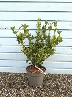 The Euonymus Japonicus Marieke is beautiful evergreen hedge similar to the variety Bravo but with a brighter margin to the leaves, bringing to a garden or landscape a variegated foliage with a golden edging, surrounding the luscious green middle of the leaf. It’s a great hedge to include in any garden, as it brings something different and is pleasing to the eye. It’s also ever so easy to look after, and provides you with an excellent privacy hedge all year round.